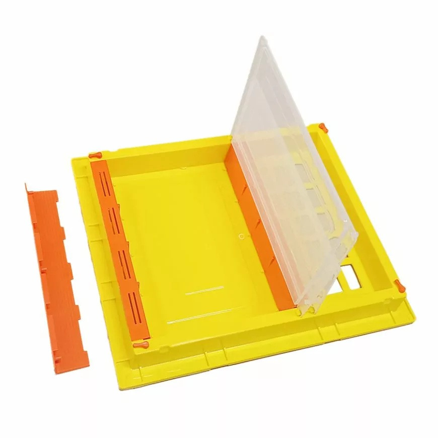 Objem kŕmidla – časť pre sirup je 3 l Objem kŕmidla – časť pre cesto je 2,5 l Zakrmujete pohodlne a bez kontaktu so včelami. rozmery: 42x49x6cm